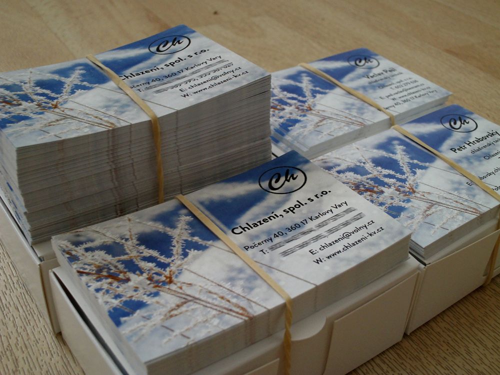 - Chlazení, spol. s r.o. - návrh grafiky vizitek a samolepek, tisk
